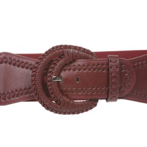 designed with leatherette braided detailing on the buckle double self covered horse shoe shape buckle High waist belt Sizing: belt size is measured from inside edge of buckle to the center hole at tip end; one size: unstretch: 27″ (70 cm), stretch to 30″ (77 cm)