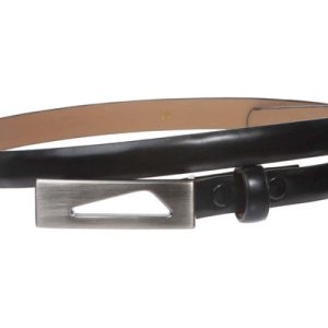 Plain faux leather, animal free Snap on, interchangeable single prong square buckle with sterling silver finish Buckle dimension: 1 1/4″X1 1/4″ Skinny fashion style, 3/4″ (19 mm) in width Sizing: belt size is measured from inside edge of buckle to center hole at tip end, order at least 2″ larger than waist measurement, e.g. 36″-38″…